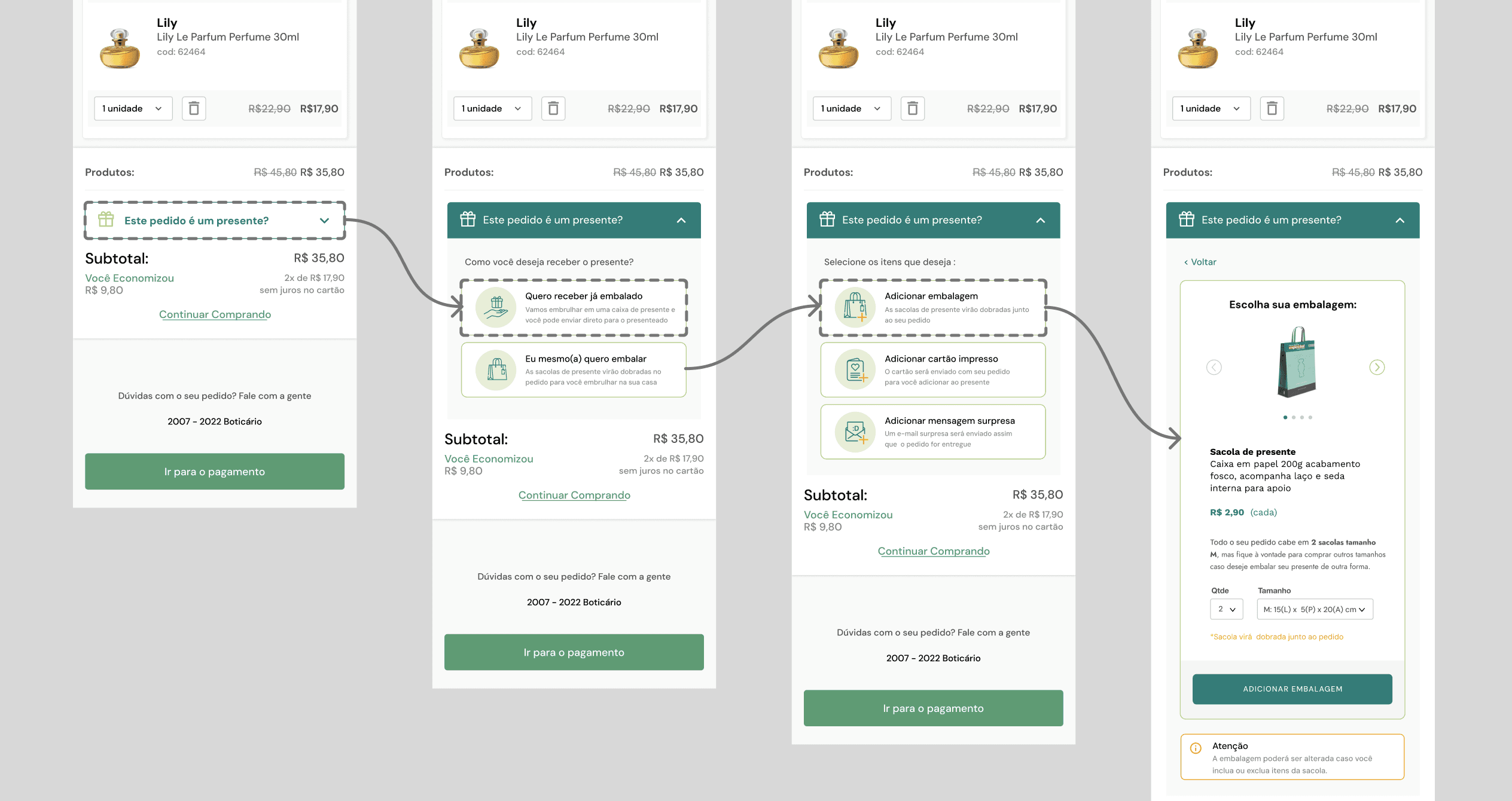 The "Gift-wrapping" feature at Grupo Boticário’s e-commerce had become a point of friction and lost revenue. Originally designed for pandemic-era needs, the solution no longer aligned with current consumer behavior or the company’s expansion goals.
